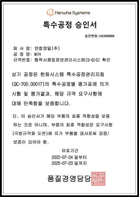 최첨단의 기기들을 갖추고 있으며, ML-STD-810, MIL-STD-202 군사규격 환경시험에 의거 환경의 영향에 대한 장비 및 전자, 전기부품의 검사를 하고 있습니다.